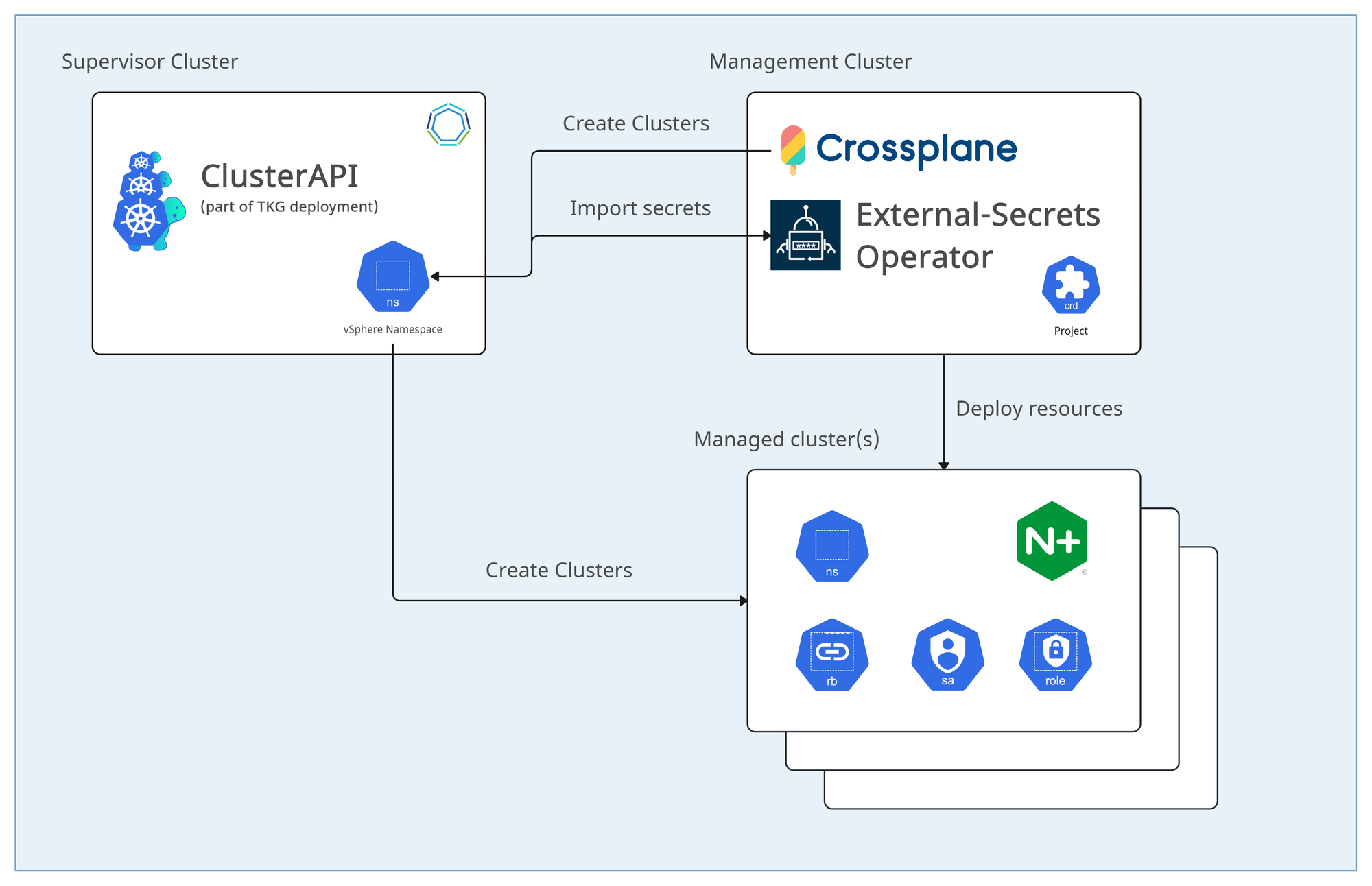 - ExternalSecret (in order to import the managed cluster's kubeconfig from the Supervisor cluster)