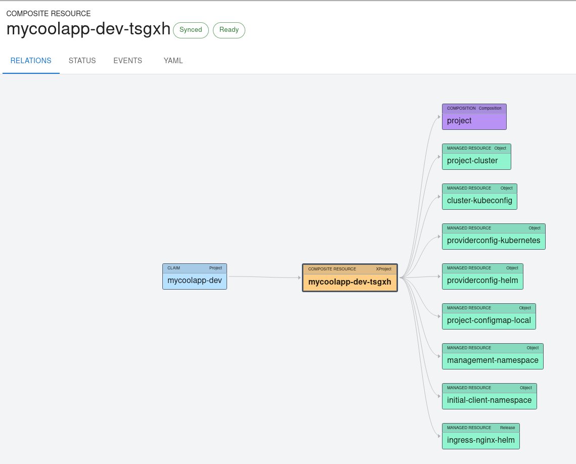 At the moment it was quite simple, a project is mapped one to one to a cluster (and some resources on it). But you could also abstract it in a way in which a project contains many clusters and other set of resources such as shared databases, s3 instances, messages queues, or any other resources in your desired cloud provider. As long as there is a Crossplane provider, you are good to go!